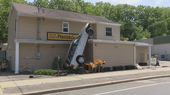 Police reported around 1:30pm, multiple vehicle accident with injuries in Smithtown. This happened in front of 1044 West Jericho Turnpike. One driver lost control and resulted the vehicle standing in front of a store. The driver of that vehicle was able to exit on own and suffered minor injuries. Pic from Stringer News.