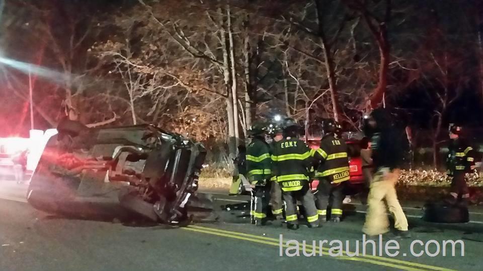Police, ESU, FDNY and EMS are at the intersection of Commonwealth Blvd and 83rd Avenue reporting accident involving 8 vehicles with one auto flipped. Multiple injuries with 2 in critical condition. Three vehicles slammed toward the fence next to Cross Island Parkway. Thru traffic from Union Turnpike diverted to inside streets for continuation from paving. Reporting one in custody for DWI. The cause of accident is under investigation.
