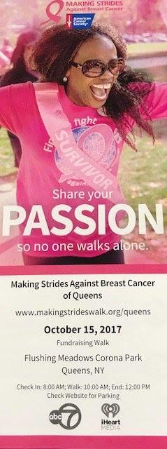 Sunday, October 15 at Flushing Meadows Corona Park. Open to the public. 8am is the check-in. Meet other people. Its a great event.