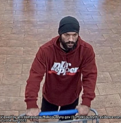 Suffolk County Crime Stoppers and Suffolk County Police Fourth Precinct Crime Section officers are seeking the public’s help to identify and locate the man who stole merchandise from an Islandia store.