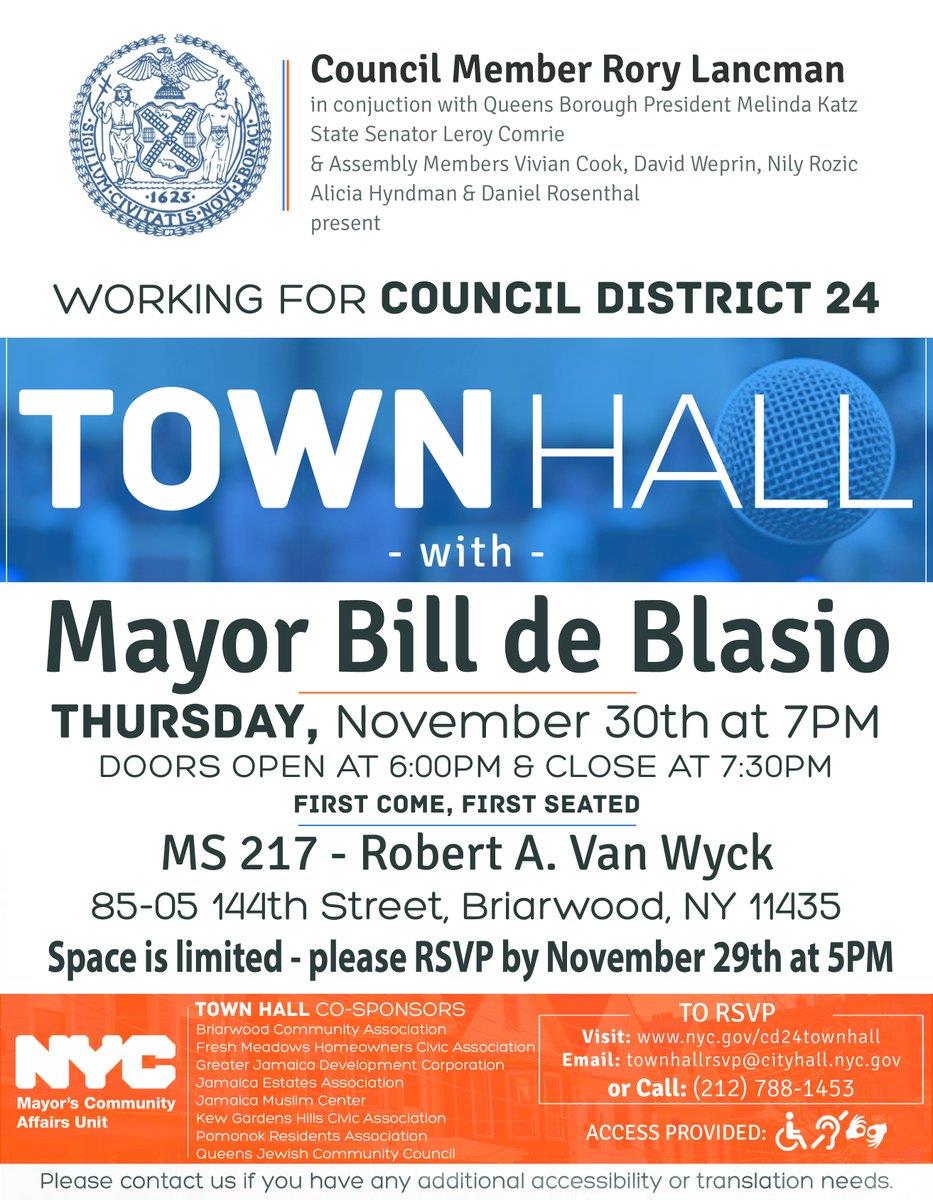 Mayor di Blasio is having Town Hall meeting in Briarwood