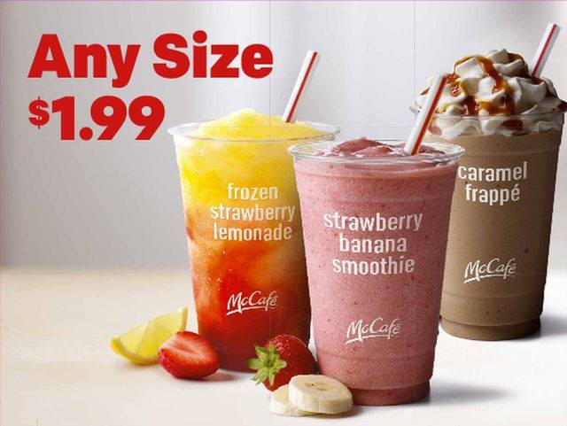 Starting April - McDonald's will sell $1 regular sodas of any size and shakes, frappes and smoothies for $2 for limited time after the company reportedly loss of customer base for the last 4 years. It will be for nationwide with no other purchase necessary.