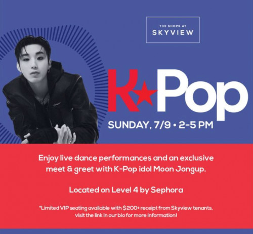 Sunday, July 9 from 2pm to 5pm at the Skyview Mall on College Point Blvd and Roosevelt Avenue in Flushing will feature K-pop idol, Moon Jongup. He is the member of the six group, B.A.P band.