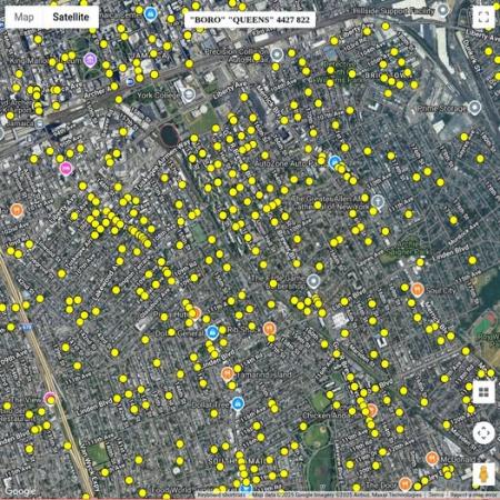 The attached image shows 822 shootings in one part of Queens, the highest.