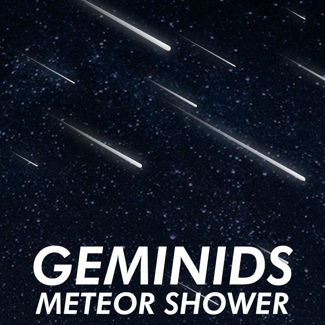 The Geminid meteror showing is coming down upon all starting tonight to Tuesday morning. Around 100 to 150 meteors per hour of debris from Asteroid 3200 Phaethon.