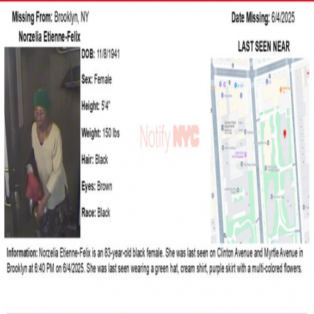 Norzelia Etienne-Felix, F/B/83 from the area of Clinton Avenue and Myrtle Avenue in Brooklyn.