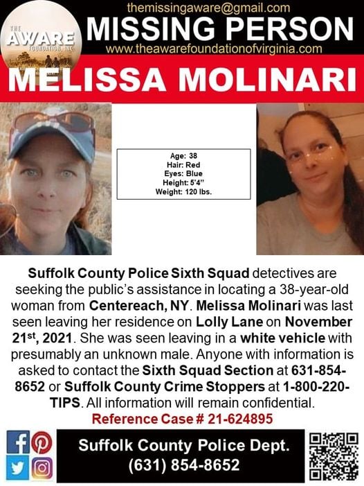 Police reported the missing woman found dead in Long Island. The body was located in Middle Island.