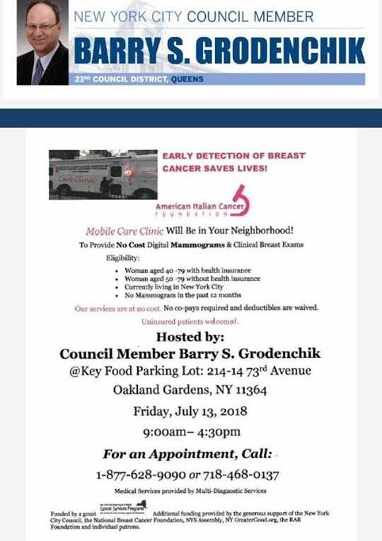 Friday, July 13 at 9am in the Key Food parking lot, 214-14 73rd Avenue. Open to the public.