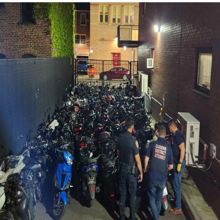 Detectives from the District Attorney’s office, working with officers from the NYPD’s 110th and 114thPrecincts, searched five locations in Elmhurst, Corona and Long Island City overnight Wednesday into Thursday, May 9. Of the 95 scooters confiscated, all were parked illegally and 71 were unregistered and uninsured.