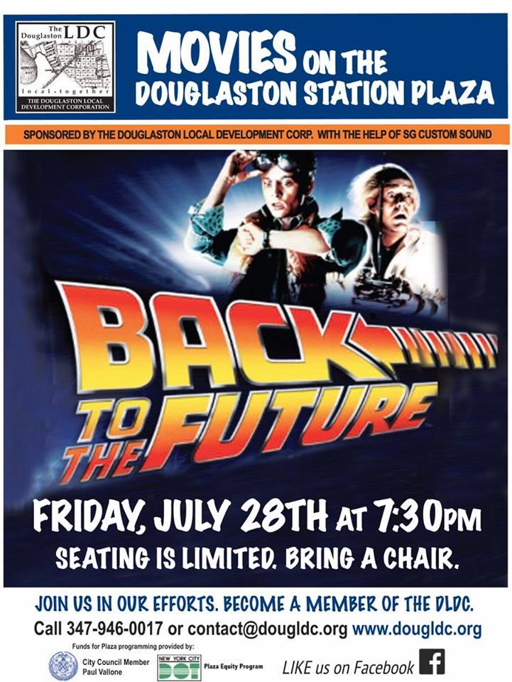 Friday, July 28 at the Douglaston Station Plaza, open to the public.Starts at 7:30pm. Location is at 235th St & 41st Ave. Early visitors will have face painting and other fun events.