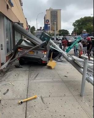 Police reported adrver lost control and crashed toward store front on Hillside Avenue and 172 Street. Also knocking out a traffic light. It happened around 9:45am today. Five people were taken to local hospitals. Ongoing investigation.