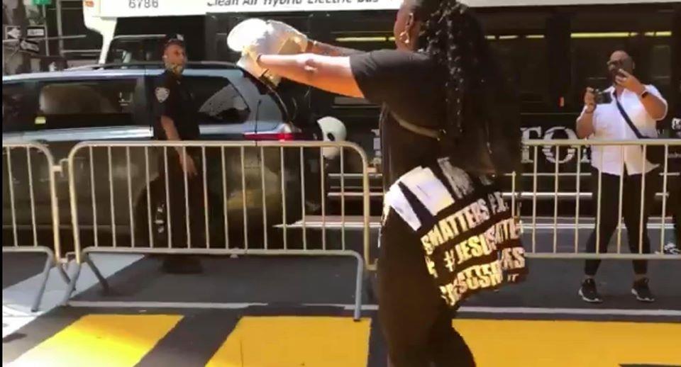 Today police reported the BLM mural in front of Trump Tower was coated with black paint. This time it?s also a female from the Christian Group demanding refund the police. She was arrested shortly. After yesterday four women were arrested for coating the mural with blue paint, the NYC Dept of Transportation fixed with yellow paint. The female arrested demands that the NYC mayor remove the mural. NYC Dept of Transportation enroute to repair the mural under emergency condition. Now reporting another woman arrested. Both will be charged with criminal mischief.