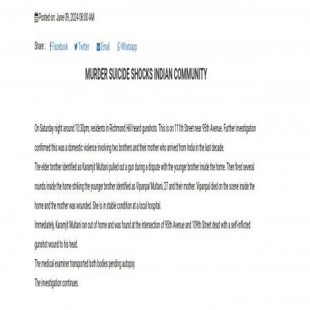 Murder suicide shocks the Indian community in Queens