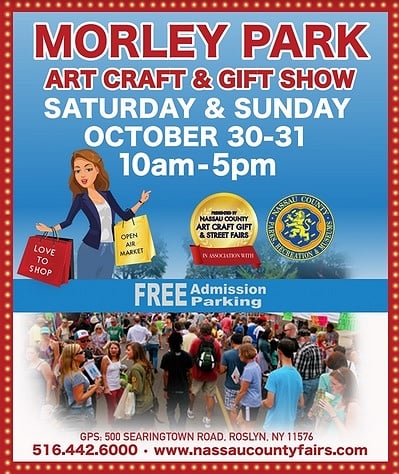 Saturday October 30 and Sunday October 31 from 10am to 5pm at the Morley Park, 500 Searington Road in Roslyn. The art craft an gift show is open to public. Plenty of food and vendors to look around.