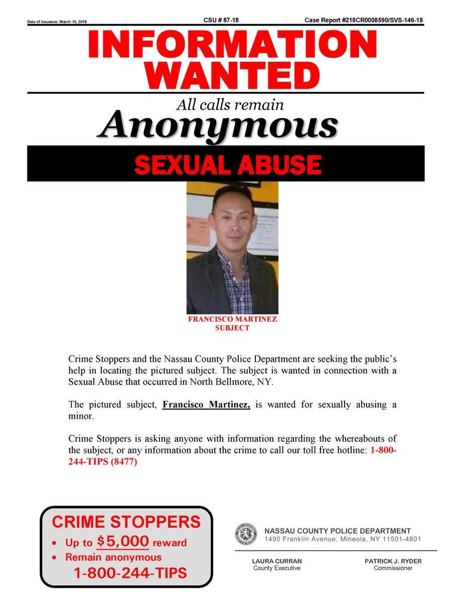 Nassau County police is searching for suspect wanted for sexually abusing a minor