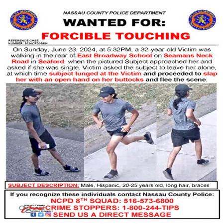 The NCPD released surveillance pictures of the suspect related to a forcible touching in Seafood. The incident was reported on June 24 around 5:30pm.