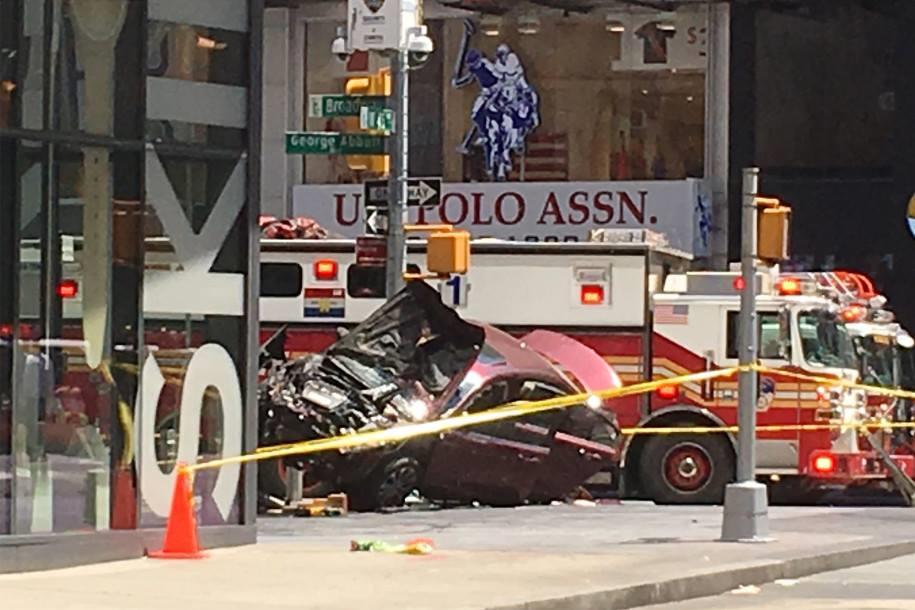 Times Square - 7th Ave and W 42nd Street, 20 people injured after vehicle slammed toward them. Four in critical condition. One dead. Driver, a 26 year old Bronx man named Richard Rojas arrested. After the crash, Rojas took off and was tacked by one NYPD officer who was nearby and got into a scuffle. Other cops came and placed Rojas in cuffs. Ongoing investigation. Area closed. Reported 12:30pm. update - Police reported Rojas was allegedly drunk. The dead victim is a 18 year old female who was walking with her 13 year old sister, also injured.