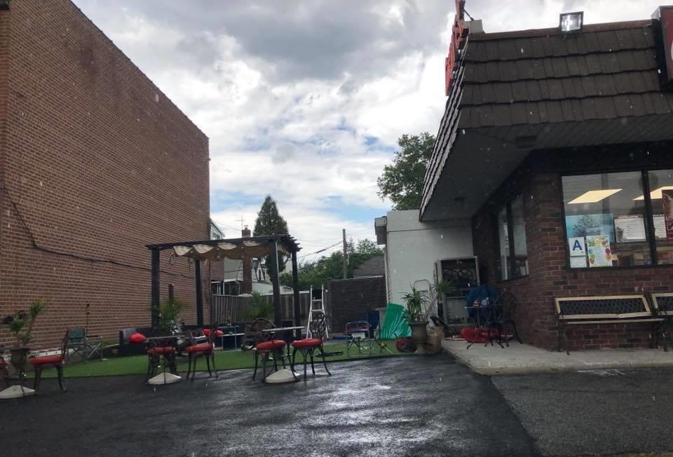 The Carvel on Hillside Avenue and 266 Street in Floral Park has one side of parking lot converted into a relaxing area. There are additions of long and short seating options with additional yard to play for children.