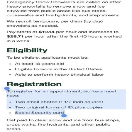 The best one is Mayor Mamdani's Snow Shoveling Program which requires photo identification to collect the $19.14 an hour paycheck and must pay taxes on it. The Mayor did not respond on the $30 an hour snow removal to the minimum wage demand due to less enrollment. However, volunteers are welcome to shovel for NYC but must require identification for transportation in city vehicles which is a new program for those who want to get involve.