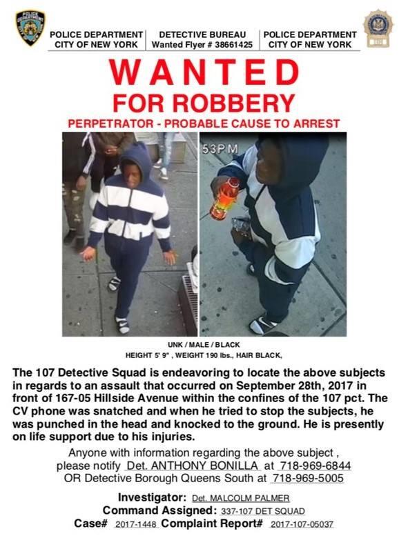 Police are searching for suspects wanted for assault leading to coma on Hillside Avenue