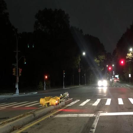 Union Turnpike is the most reported path with traffic lights getting knocked down all the time. The latest one is at the intersection of Francis Lewis Blvd last night around 7pm when a driver jumped the curb knocking down the light to another ongoing vehicle westbound. According to the NYC Dept of Transportation, each light cost around $25,000 including installation. Whoa.