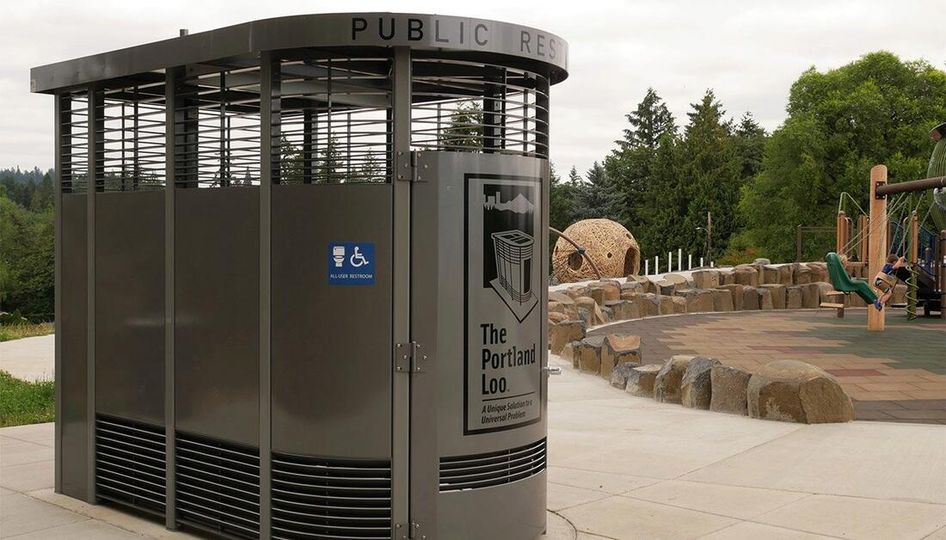 The Portland Loo toilet all made of metal with breathable on top will be installed at 1800 Hoyt Avenue N.