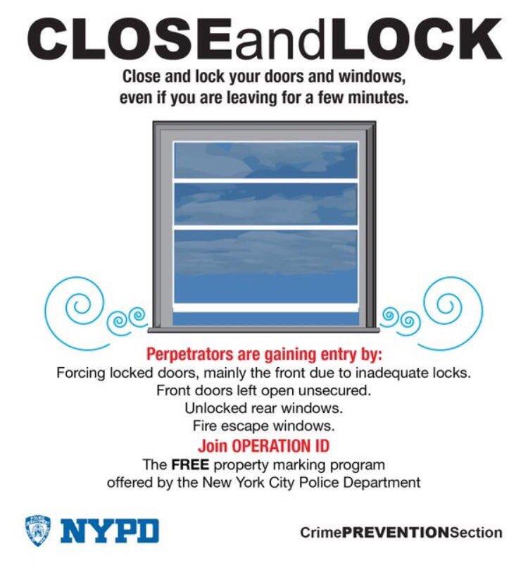 NYPD advising residents with property marking program for free by contacting the local precinct. Details about safeguarding is at this link, http://www.nyc.gov/?/crime_pre?/Safeguard_Your_Apartment.pdf. Reported 5pm.