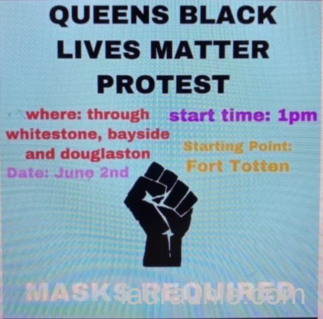 The group, Queens Black Lives Matter confirmed there will be protest on June 2 at 1pm starting at Fort Totten in Bayside. The protest will continue around Whitestone, Bayside and Douglastion. NYPD confirmed the protest and will be at the locations tomorrow monitoring the area and activities.