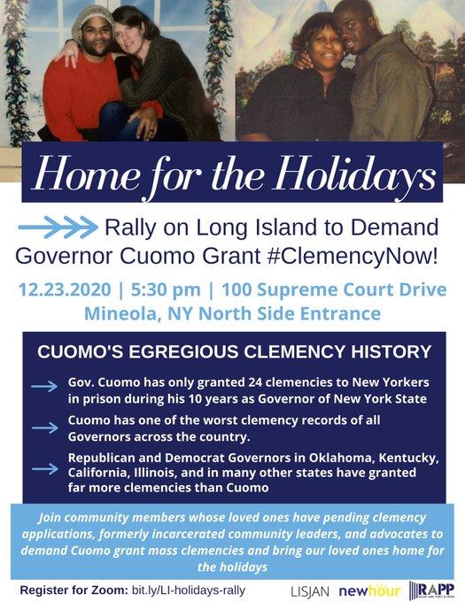 Clemency Now is having rally in Mineola. This is in front of the executive building scheduled around 5:30pm. Police will be at the location. The organization want to release vulnerable incarcerated NYers.