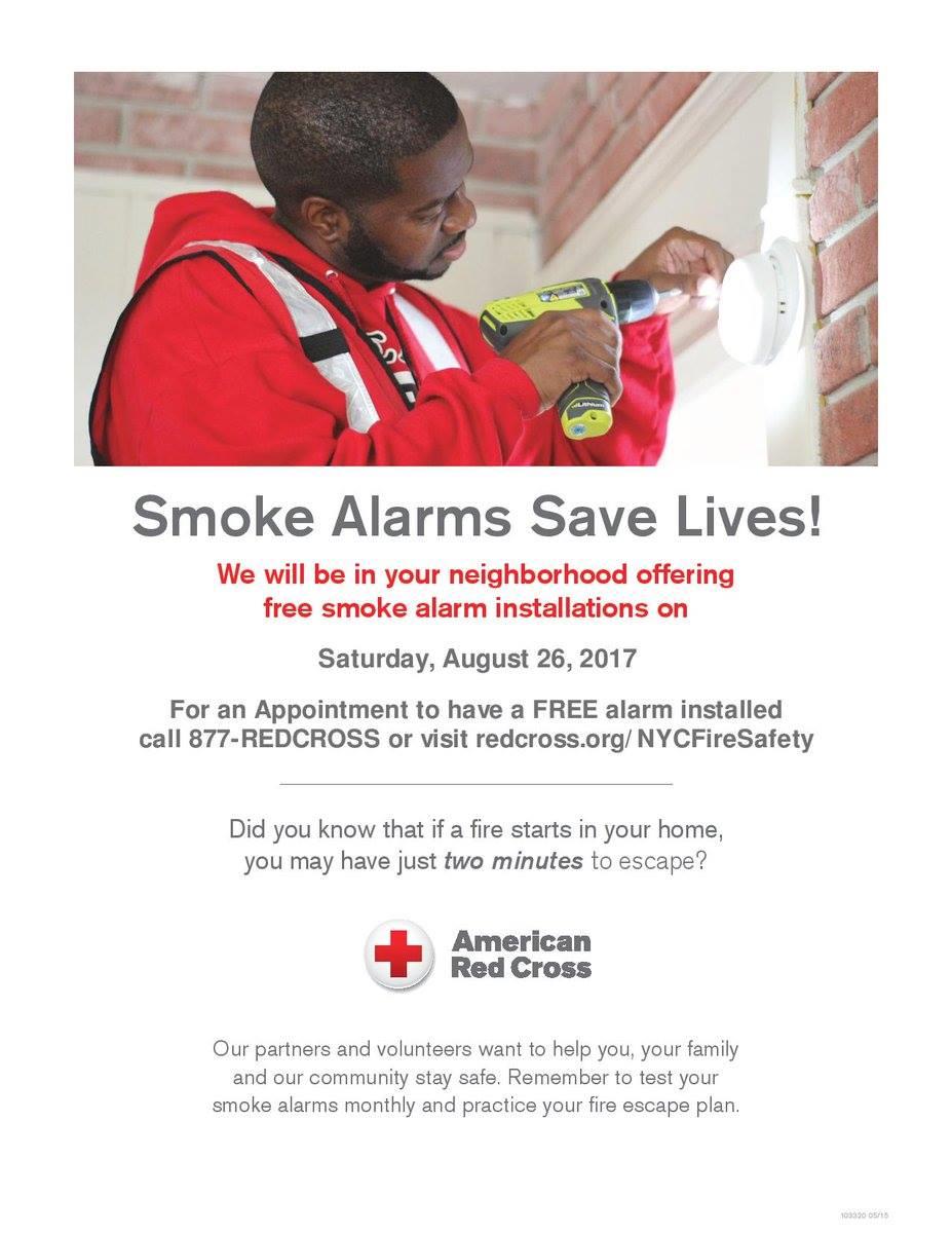 On Saturday, August 26, Red Cross will be in NYC including Queens giving away free smoke alarm including installation. To make appointment, call (877) RED CROSS or apply online.
