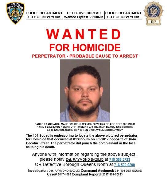 NYPD released details to the public of suspect wanted for homicide in Ridgewood.