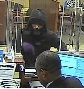 The subject is described as a black male, approximately 30 years old, 6 feet tall with a thin build. He was wearing a black jacket, black hooded sweatshirt, black pants and purple gloves.