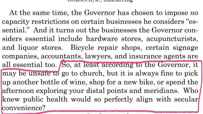 This is what Cuomo said during today's press calls, Supreme Court decision doesn't affect percentage capacity limits in houses of worship, i.e. below 25-50% capacity required, nor social-distancing/mask requirements. He also says restrictions on attendance at religious service are politically motivated and irrelevant.