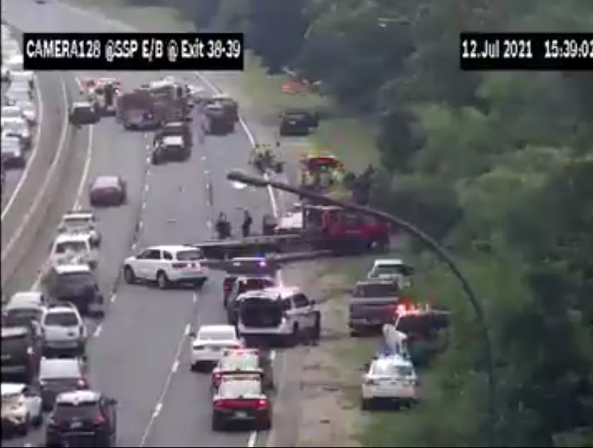 Southern State Parkway eastbound at Exit 38, heavy delays due to a vehicle flipped after multiple vehicle accident. ESU, EMS and police are on the scene. Delays are back to Exit 20 due to all lanes closed.