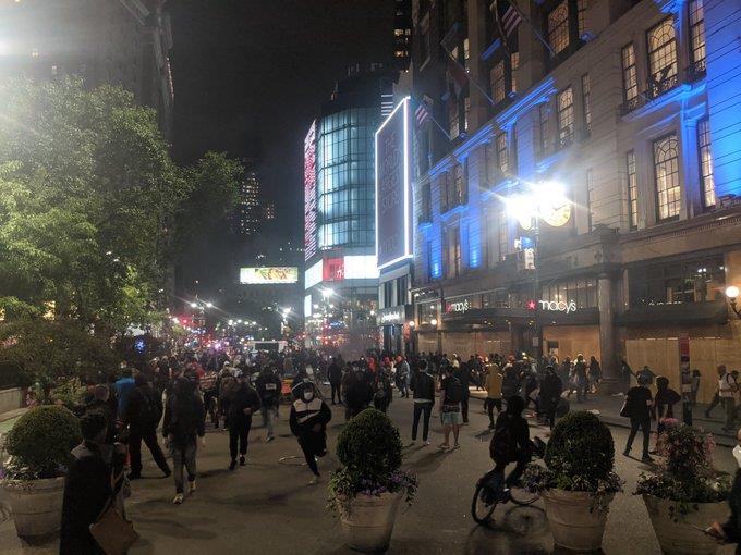 Police reported of more than 50 arrests inside the iconic Macy's store in Manhattan and violence despite the store is boarded up. This is the second day incident at the store. Last night small group of looters entered the store and looted. More than 200 teens are around Macy's and fire is being lit at the store damaging the iconic landmark.