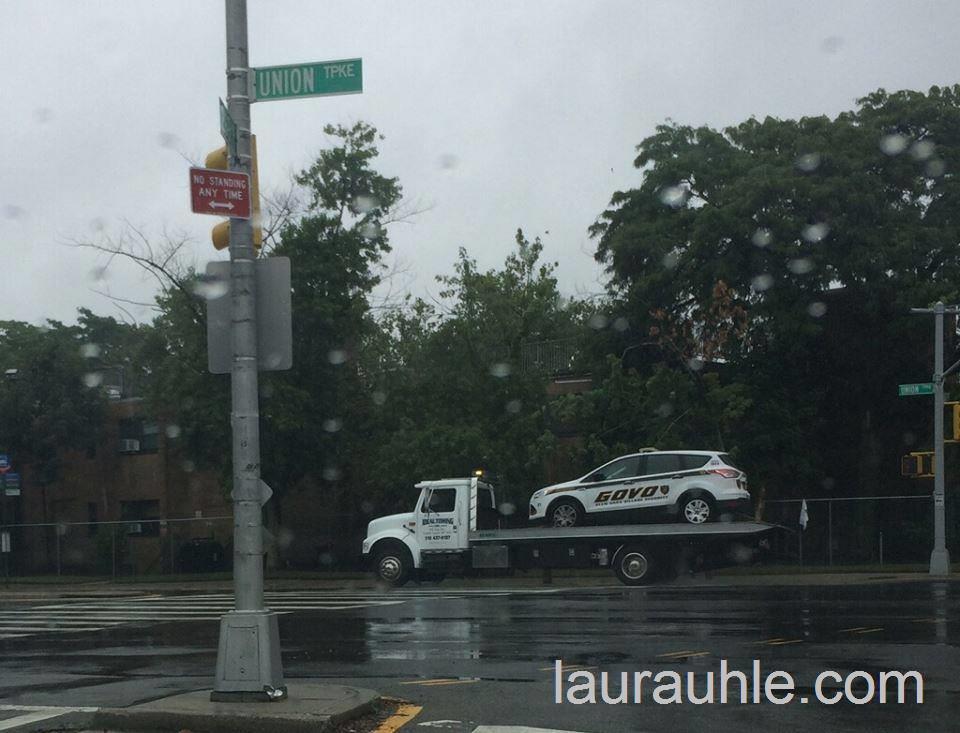 Security vehicle towed away after disabled in Glen Oaks