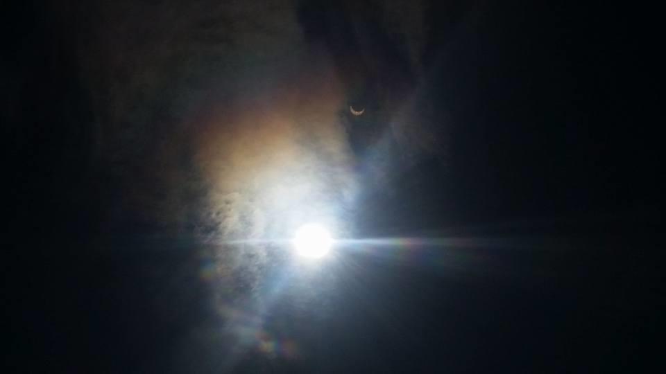 Sky is getting dark in northeast Queens. 20 minutes to go... I am outside with my sunglasses taped over. Yep, taped 4 sunglasses over for the eclipse.