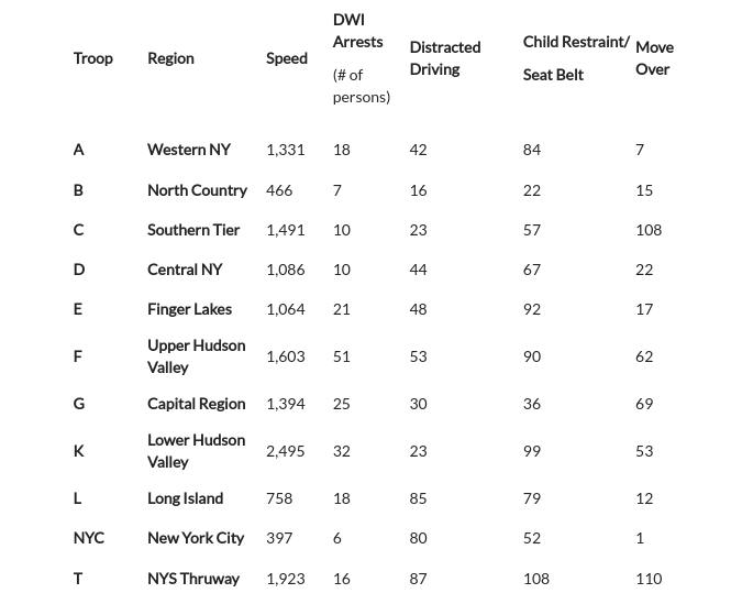 The New York State Police announced that Troopers issued 25,199 total traffic tickets during the special “Speed Week” traffic enforcement campaign. “Speed Week,” which was conducted from Monday, August 15, 2022, to Sunday, August 21, 2022, targeted speeding, and other unsafe driving behaviors, including distracted driving and violations of the Move Over Law.