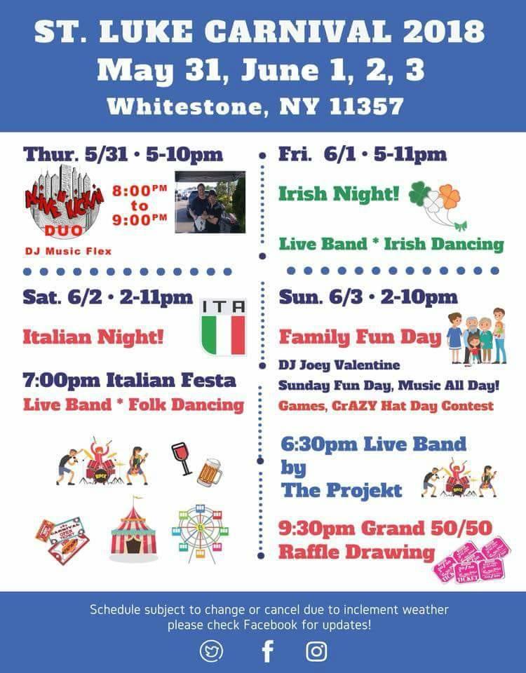May 31, June 1, 2, 3 at St Luke's Church, 16-34 Clintonville St in Whitestone. Open to the public.