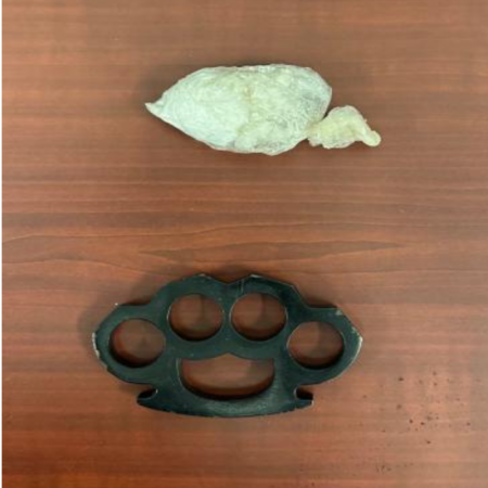 An investigation determined that Guzman was in possession of 18 grams of cocaine and metal knuckles.