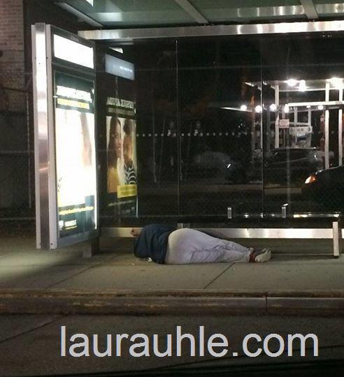 On Saturday, August 19 in the night time, the same aggressive panhandler was found in the same intersection of Little Neck Parkway and Union Turnpike but across where he was seen sleeping on the sidewalk of the bus stop, Due to not following up at night time, the male presumed to be sleeping there.