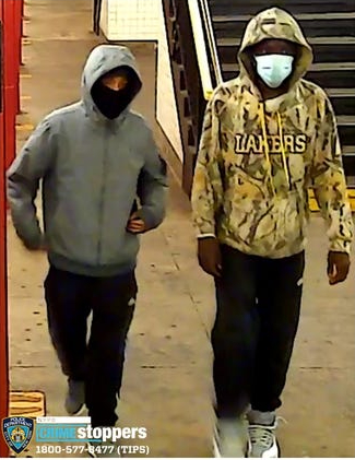 Police released surveillance pictures of two suspects wanted for armed robbery at the Kew Gardens Union Turnpike subway station. The incident was reported on November 17 around 12:30am when a male, 26 was robbed on a southbound F train approaching the station. The suspects took off with backpack, cellphone, clothing, and approximately $800 from the victim.