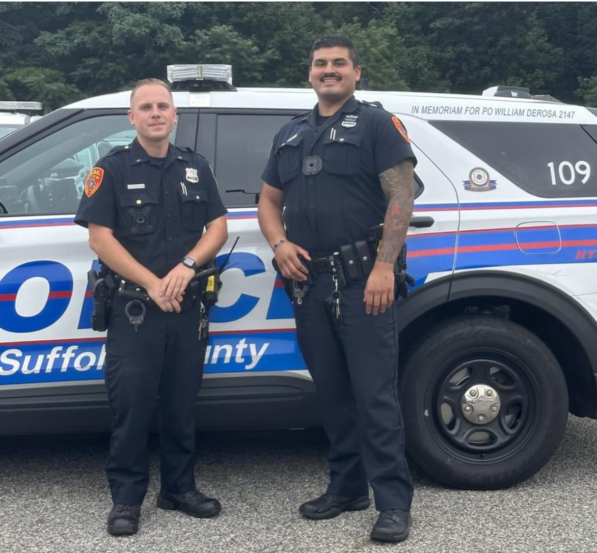 It was quite the morning for two First Precinct officers who helped an Amityville woman deliver a baby in her home.