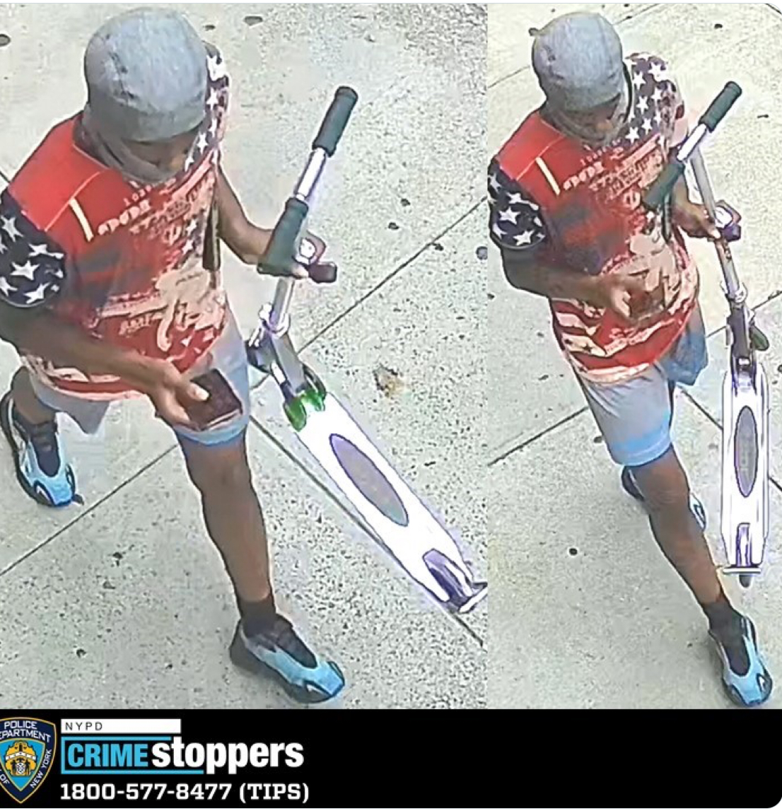WANTED-ROBBERY: 7/15/23 at approx. 4:30PM, at 344 2nd Ave @NYPD13PCT Manhattan. The suspect knocked a 13-yr-old male victim to the ground & took his scooter. Any info call us at 800-577-TIPS or anonymously post a tip on our website crimestoppers.nypdonline.org   Reward UP to $3,500