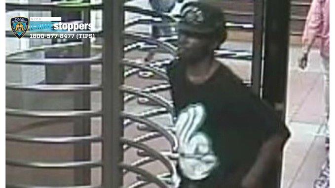On 6/16/19 around 2 a.m. within the confines of the 7 Precinct in Manhattan, individual pictured is accused of urinating on a female on a Manhattan-bound J train and jumped on her back when she tried to get away. If you have any info, call 800-577-TIPS. (8477). (From NYPD)