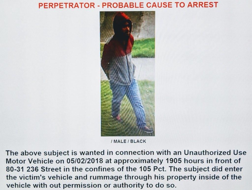 Police reported a suspect broke into a vehicle in Bellerose. It happened on May 2nd around 7pm on 236 Street near 80th Avenue.
