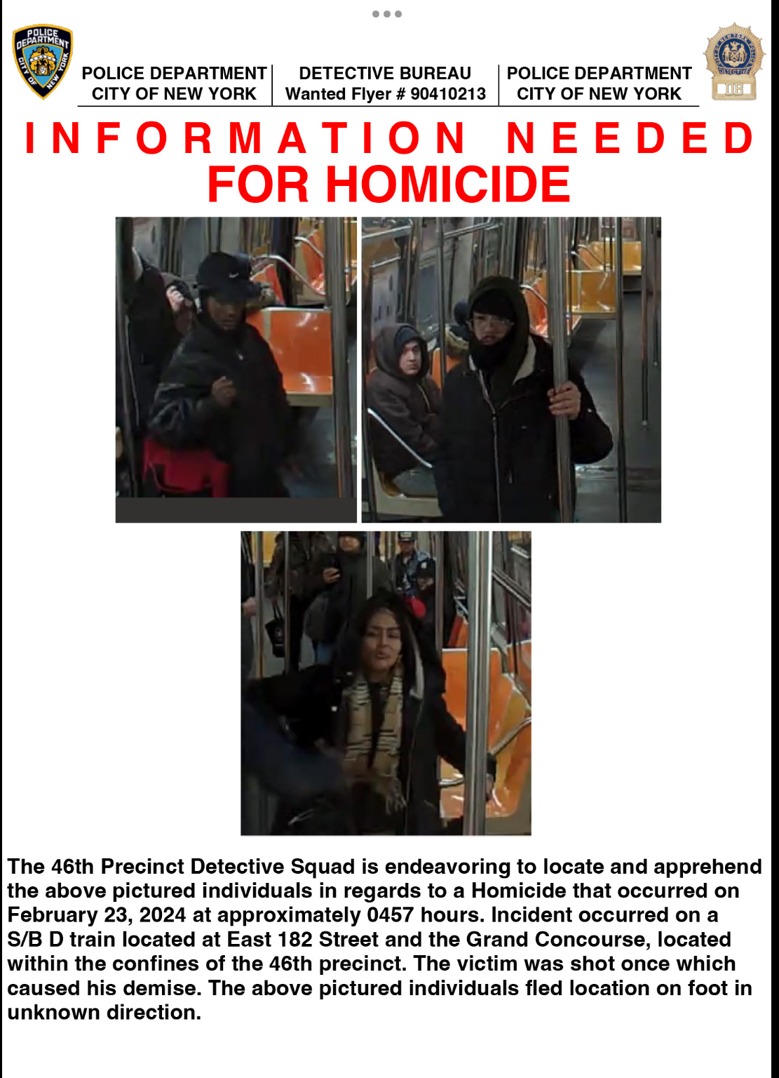 Suspects wanted in connection with homicide on the subway this morning