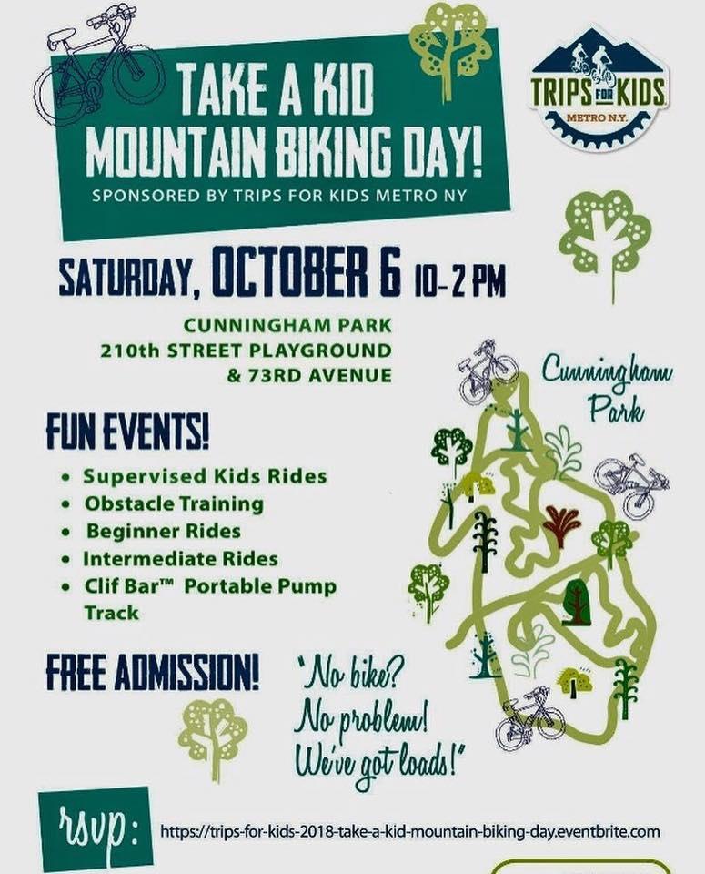 Saturday, October 6 from 10am to 2pm at Cunningham Park. Entrance at 73rd Avenue and 210 Street. Its free and open to the public. Bikes will be provided.