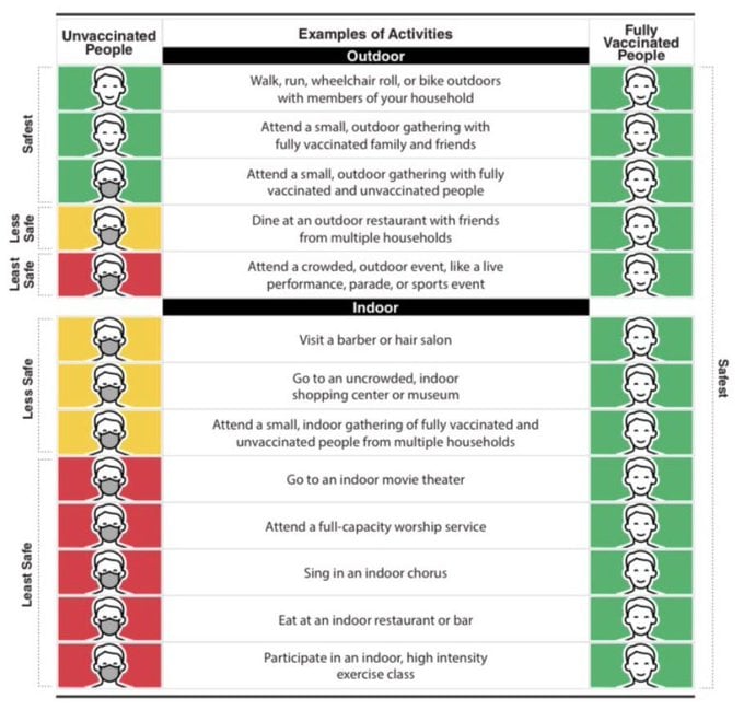 Today, the CDC says vaxxed can participate in both indoor and outdoor activities whether it's small or large in NY without a mask or social distancing. The only exceptions are buses, planes, hospitals, prisons and homeless shelters. However for NY, the governor has to decide since CDC is federal level. The same with NYC mayor who cannot decide unless the governor says so. The governor received the message and is deciding at the moment so it's wait and watch. As for the masks, here is what you can do with them, https://news.artnet.com/art-world/artists-face-mask-couture-1914648