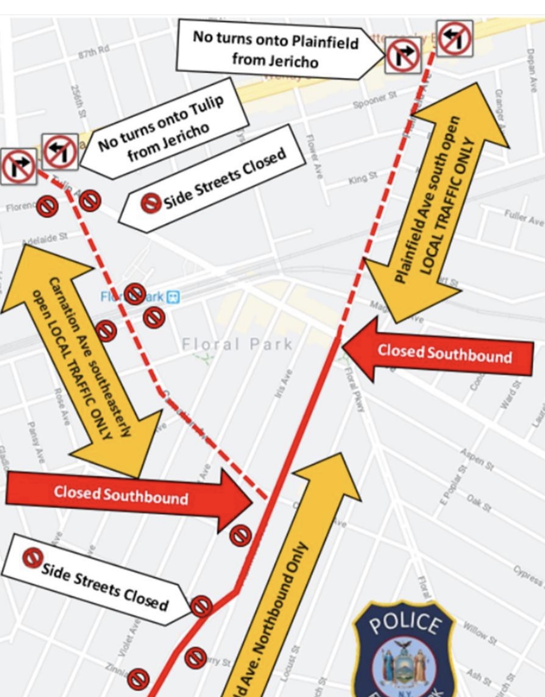 DO NOT MOVE OR DRIVE AROUND BARRICADES. Anyone observed taking such action will be summonsed to appear in Floral Park Village Court and will be subject to fine or other penalty.